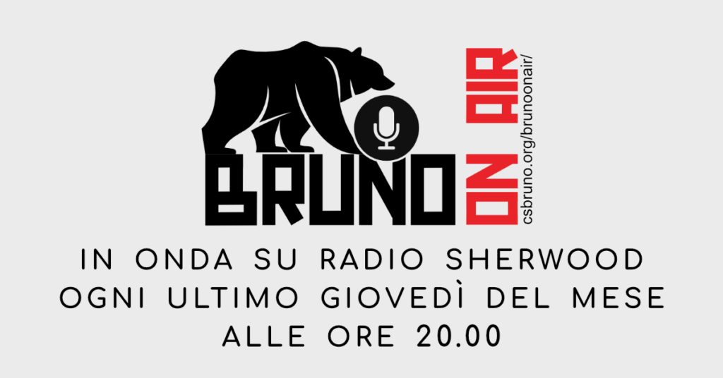 Bruno On Air è un progetto per la produzione di materiale multimediale che si pone come obbiettivo quello di raccontare cosa succede al Centro Sociale attraverso interviste a chi vive e fa vivere lo spazio partecipando e portando avanti progetti, attività e concerti, contribuendo così giorno dopo giorno, mattoncino dopo mattoncino allo sviluppo di una comunità libera e solidale.