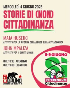 A partire da questo appuntamento referendario (che vede altri 4 quesiti sul lavoro), vogliamo anche allargare lo sguardo e rafforzare il nostro impegno antirazzista e decoloniale. Lo faremo insieme, confrontandoci su pratiche, strumenti e percorsi utili a rendere le lotte antirazziste partecipate e intersezionali.